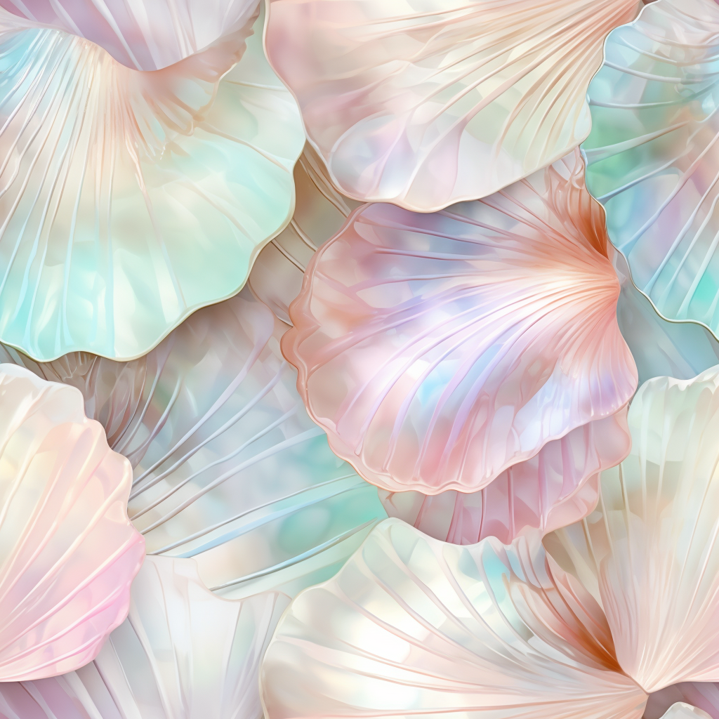 These designs showcase the beauty and diversity of seashells in different artistic styles. "Spiraling Seashells" captures their organic shapes with delicate watercolor strokes. "Pearly Perfection" highlights their opalescent beauty through intricate painting and iridescent effects. "Tropical Treasures" portrays vibrant seashells inspired by tropical beaches in bold hues. "Whimsical Waves" brings a playful and imaginative twist to seashell art with energetic brushstrokes. And "Ethereal Elegance" creates a serene and magical atmosphere with delicate floating seashell illustrations.