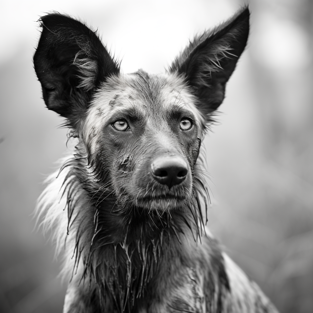 African Wild Dog Black and White Photography Canon EF 70-200mm f/2.8L IS III USM
