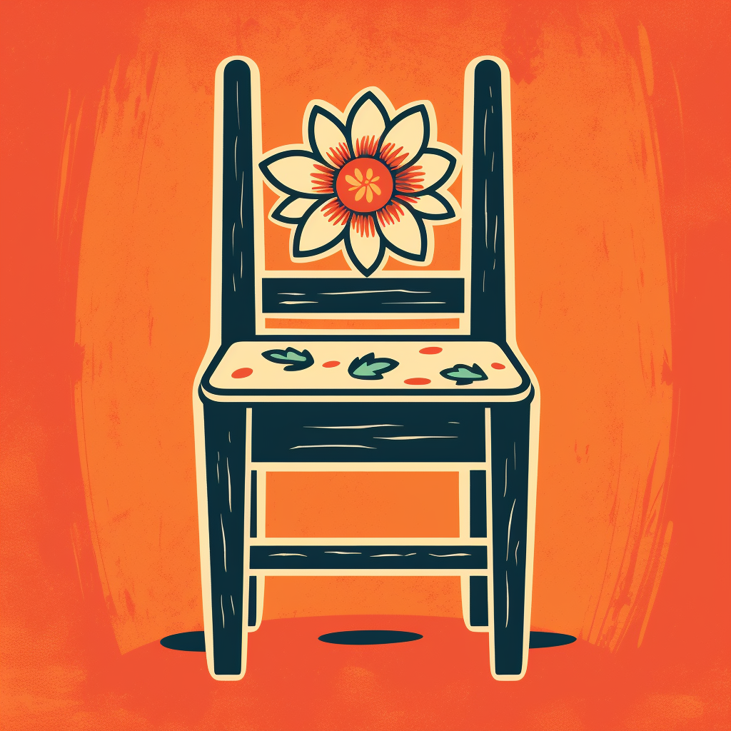 Chair. Friendly. Block print. Simple 2d flat illustration.